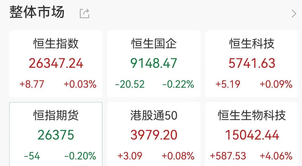 继上星期五大涨迎来开门红后,港股三大指数今天出现窄幅震动行情,到收盘,恒生指数微幅上涨0.03%,国企指数跌0.22%,恒生科技指数微涨0.09%。