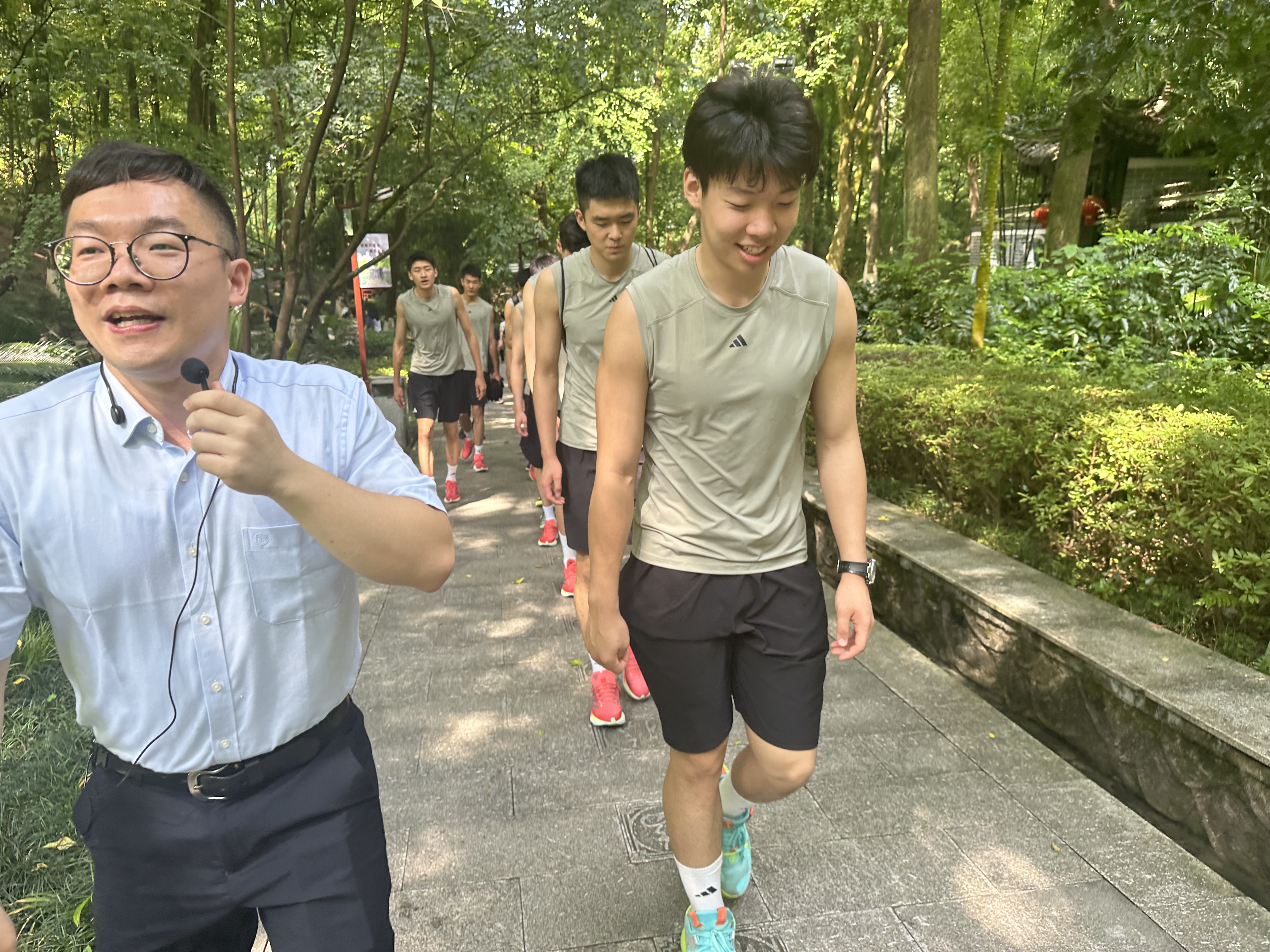 海拔526米的苏仙岭有3000多个石阶,是当年中国女排在郴州集训展开野外体能练习的最佳场所,女排队员们严守从难、从严、从实战动身、坚持大运动量的练习准则,在规则时间内抵达山顶,如有一人不合格,全员从头再练。来到女排体能阶梯练习起点,U18男排国家队的队员们个个摩拳擦掌、摩拳擦掌,阳光虽烈,但女排精力鼓励他们一路不停歇,顺畅登顶后队员们感觉痛快淋漓,热情满怀。